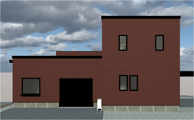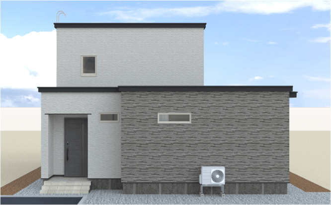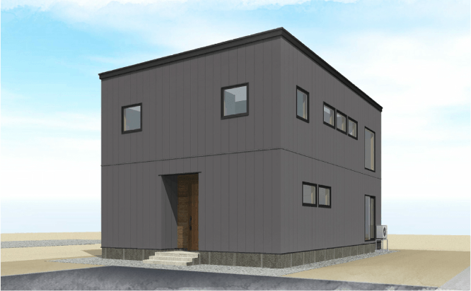- グレーカラーのガルバリウム鋼板が映えるスタイリッシュな外観
