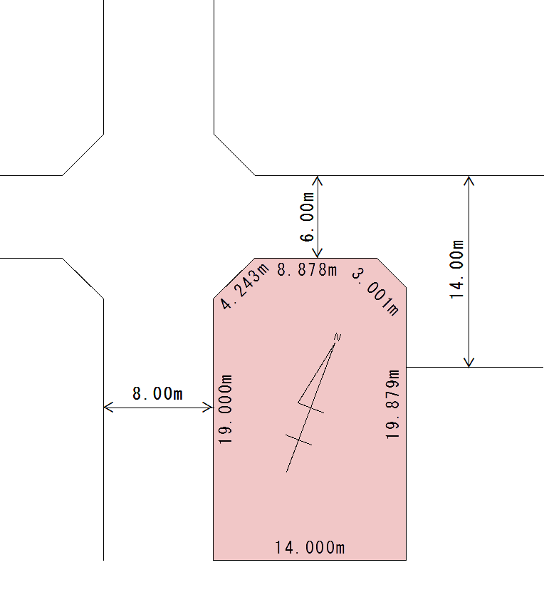 | 間口 | 南西側:22.00m 北西側:14.00m | ||