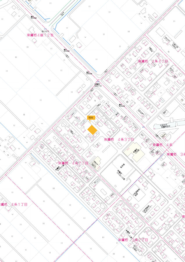 学区(距離と時間) | 近文第一小学校 まで徒歩約20分(1.6Km) 東鷹栖中学校 まで徒歩約6分(500m) ※80mを1分で計算 |