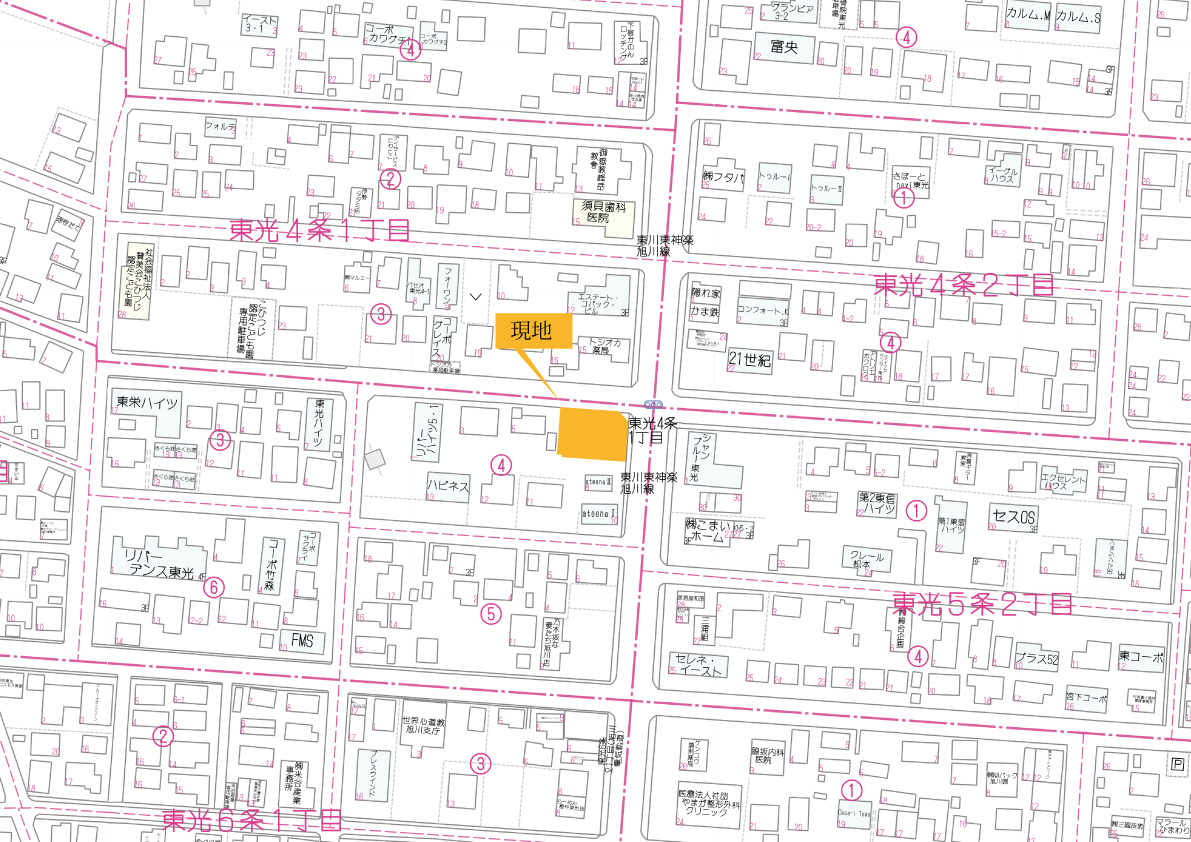 | 備考 | 住所:旭川市東光5条1丁目4番6号(地番:257-3・255-44・257-9) 3筆あり ※解体更渡し 解体時期は2026年3月頃の予定 |