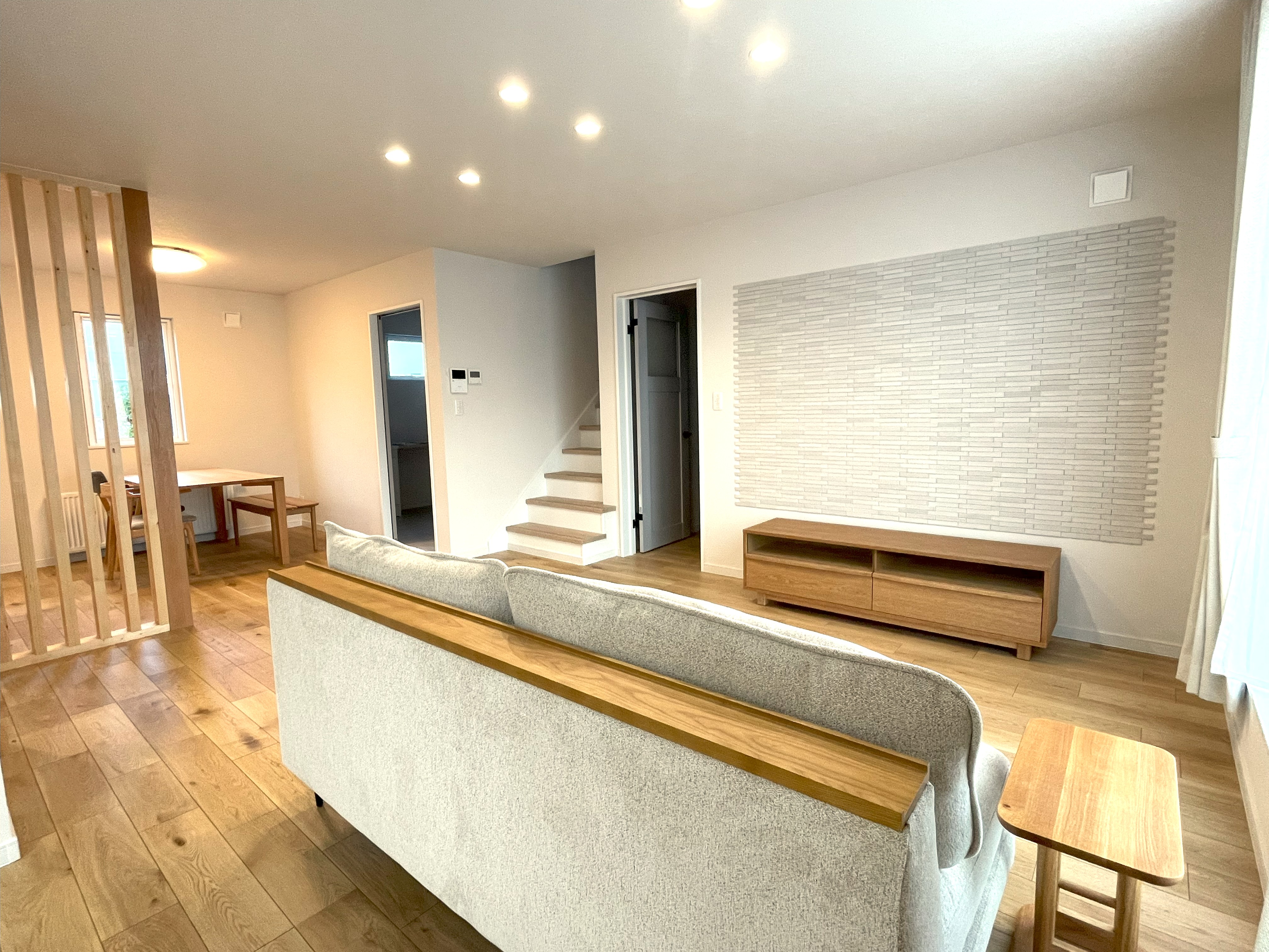 ・TV壁面にはエコカラットを使用し、リビングのアクセントに