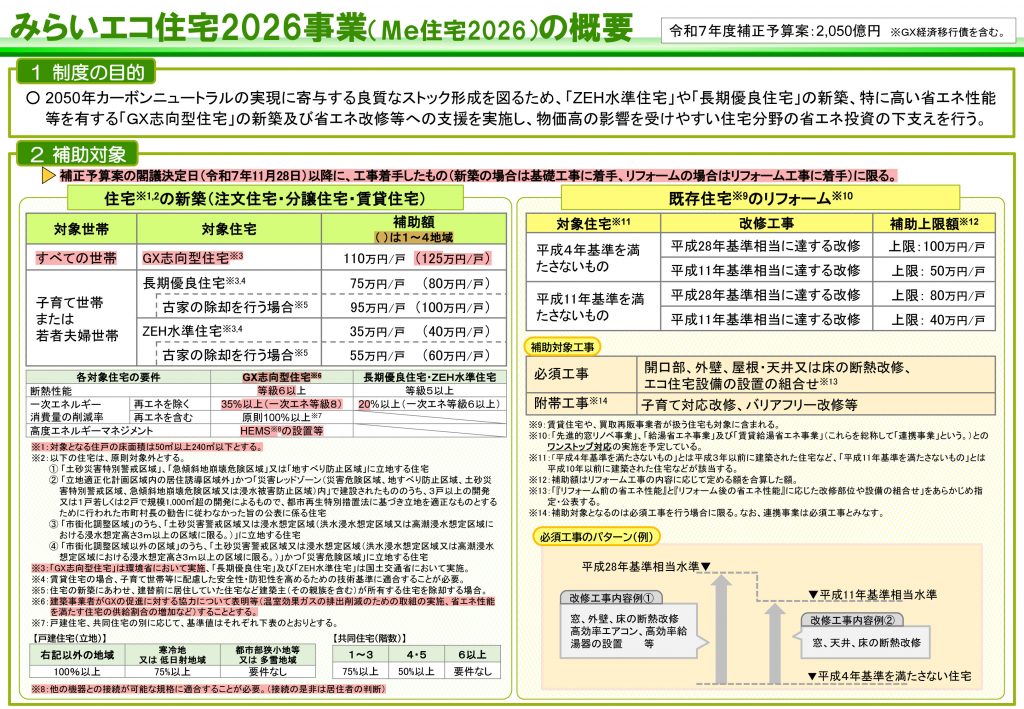 ひと月ほど前に「みらいエコ住宅2026事業」という来年度に向けての補助金事業の発表がありました!