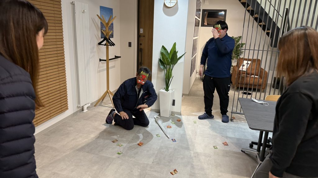 2026.02.03 2月3日 節分です。 菅野 佳明 6.【リフォーム・リノベーション】 こんにちは。 リフォーム事業部 菅野です。 2月3日 節分です。リフォーム事業部で豆まきしました! 今年も福が来るよう祈ってます。 いじょうで~す。 この記事を書いた人 菅野 佳明 リフォーム部工務の菅野です。 この投稿者の最近の記事 2025.10.05 ハルビアサウナ 2025.04.08 美味しい物ご紹介 2024.11.15 美味しい物ご紹介 2024.07.15 社内イベント
