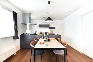 IHの前に壁が無い仕様なので、小さなお子様のいるご家庭もリビングの様子を見ながら安心してお料理をすることができます。