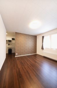 1階にはアクセントクロスを使用せず、白のクロスで統一しています。