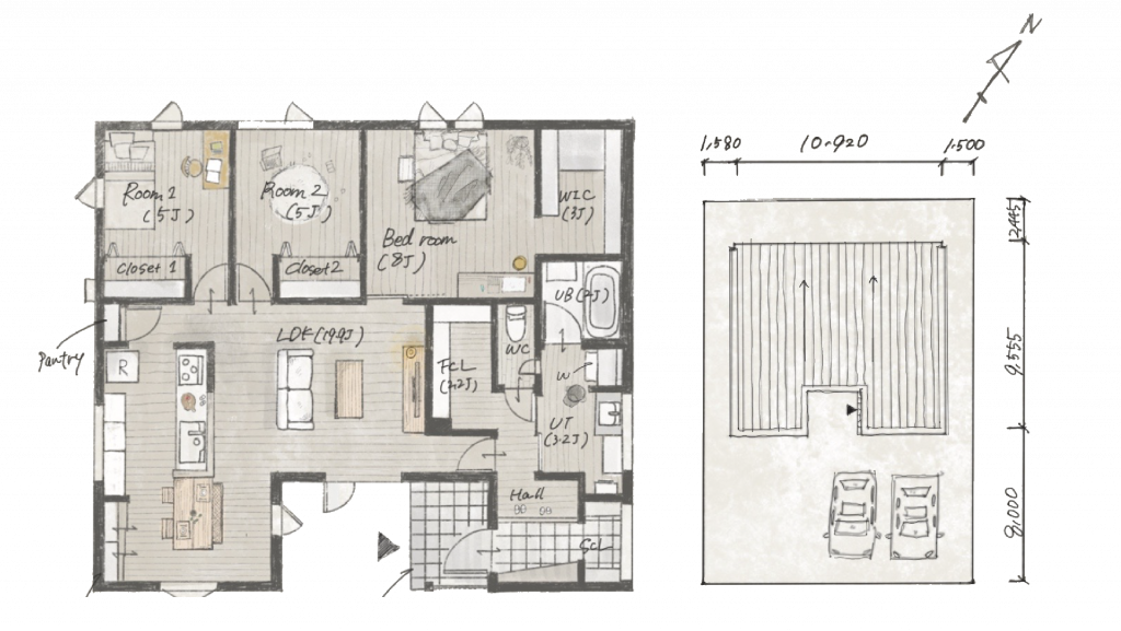 コンパクトでデザイン性が高いながらも、ライフスタイルや、生活する上での動線、収納等、機能性も考慮した2棟になっております。