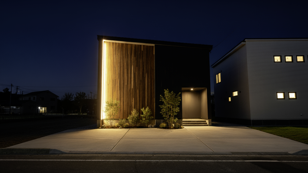 夜には、間接照明がより美しい陰影を生み出し、洗練された雰囲気を醸し出します。