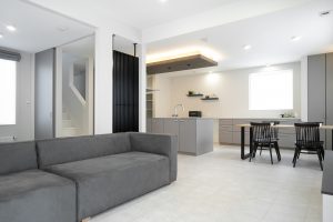 建具の高さもお打合せでご相談させていただいたポイントです。今回は天井までのハイドアを1階まわりはご採用いただき、扉を開けてもスッキリと、閉じてもスタイリッシュに仕上がりました。