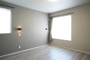 寝室に設けた大きな窓は設計からのご提案で、朝起きた時に気持ちよく外を見られるようにとご採用いただきました。遮光のカーテンは奥様のこだわりポイント。ぐっすり日頃の疲れを癒していただける空間になっていると幸いです。
