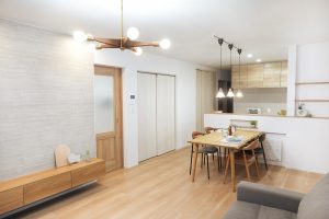LDKは人気のキッチンとダイニング横並びにしており、作ったご飯を持って行ったり食器の片付けをするにも楽になること間違いありません。