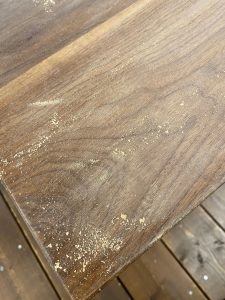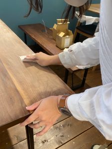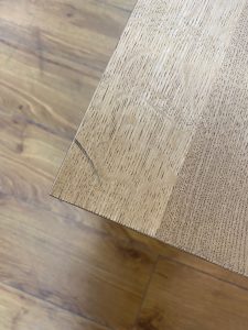 下の画像はショールームのベンチについていた擦り傷をメンテナンスで修復したものです。