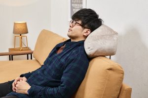 付属の肘クッションを枕代わりにしたときに、首を痛めず横になれるというありがたい造りです。