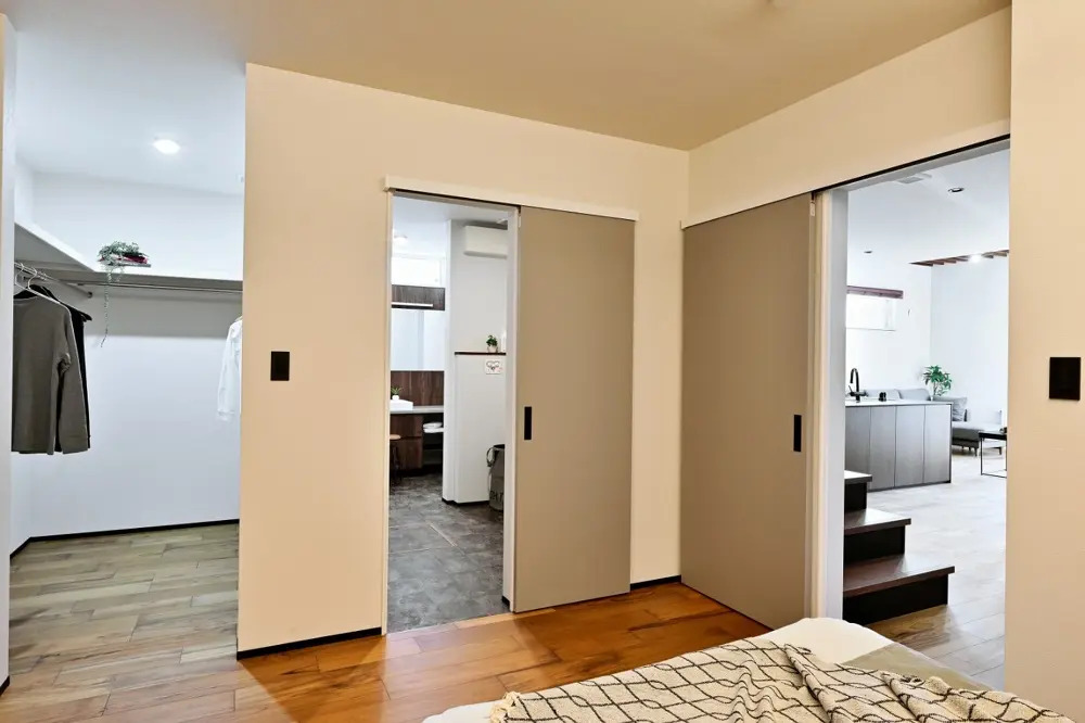 主寝室をはじめ、すべての生活機能が1階に揃う石山工務店のモデルハウス。
