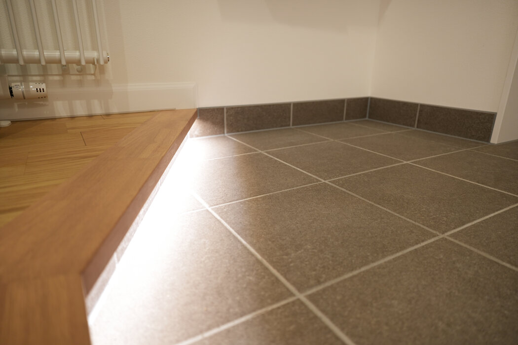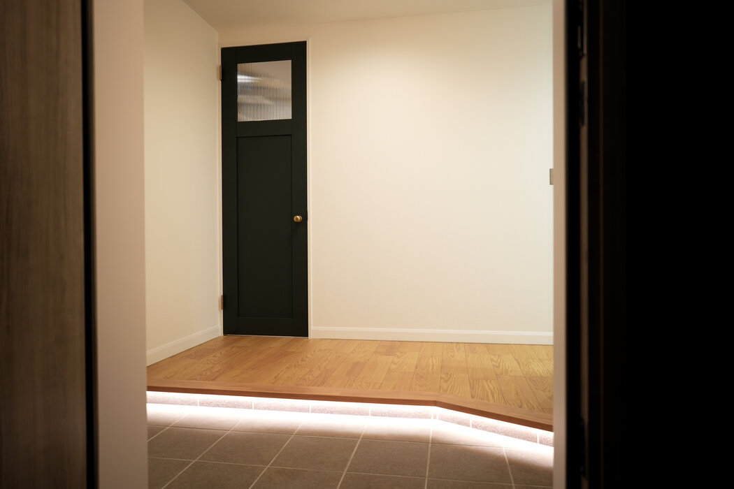 奥様のご希望を叶えた、足元の間接照明が綺麗な玄関ホール