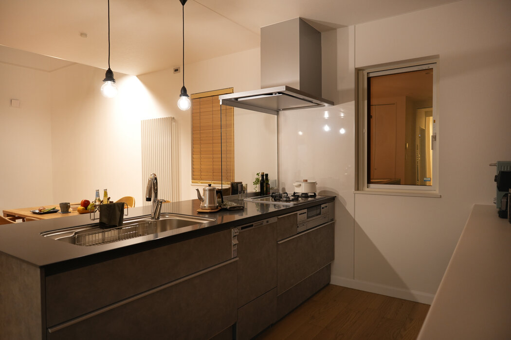 フロントオープン型の食洗機やコンセントもしっかりついているので、お料理も後片付けも快適にすることができます。