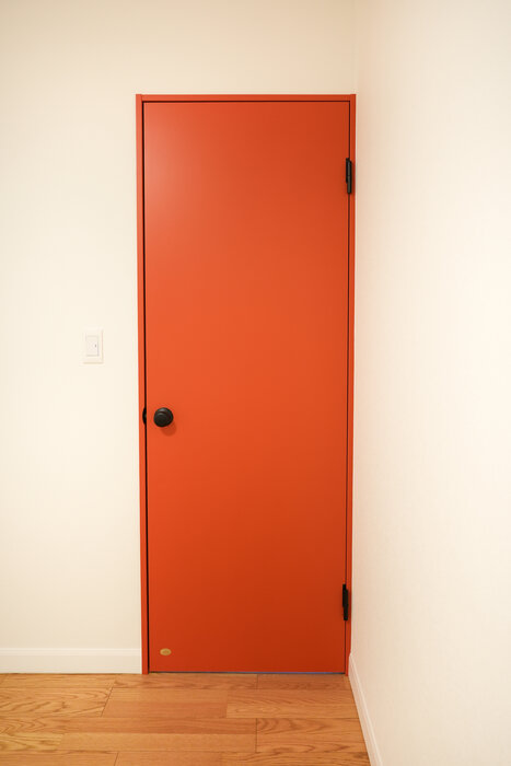 キッチン全面左側の扉は収納スペースになっているので、ちょっとした小物や食器などを収納するのにちょうどいいスペースです。