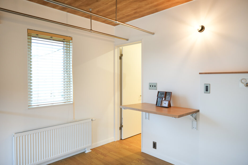 アイロンがけや衣服を畳む作業ができる折り畳み式のカウンター付き。